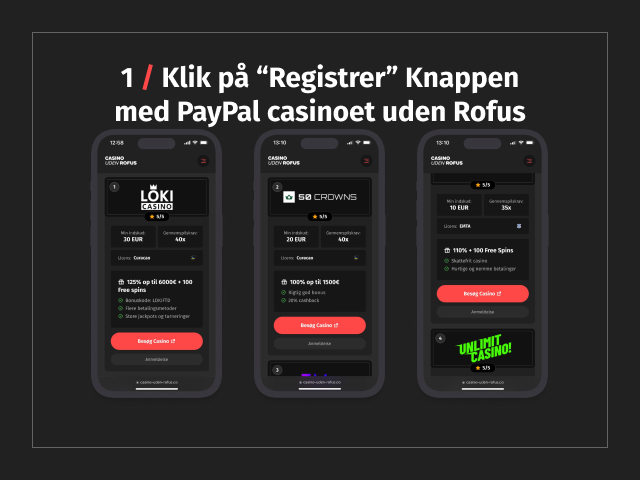 1. Klik på “Registrer” Knappen med PayPal casinoet uden Rofus